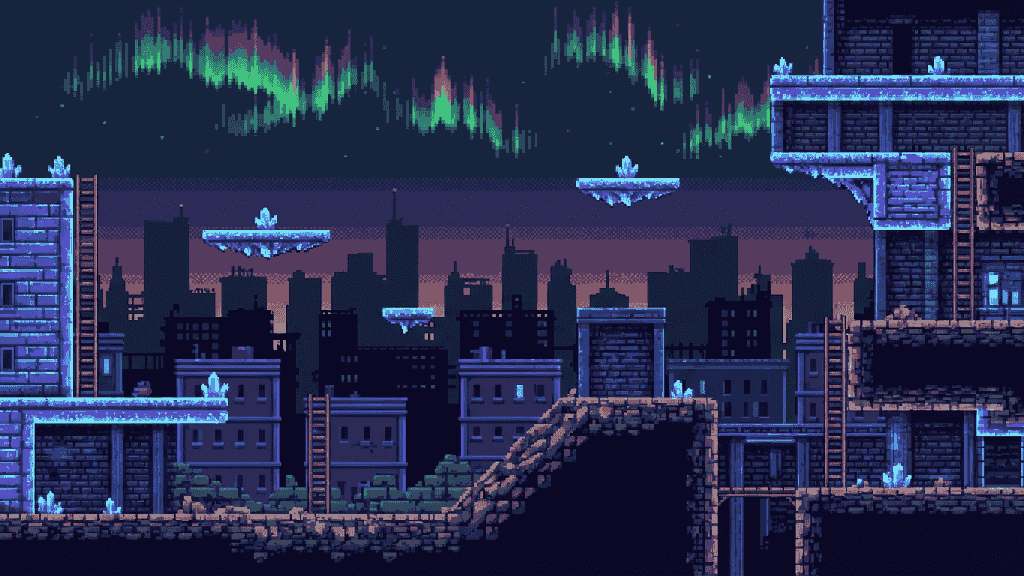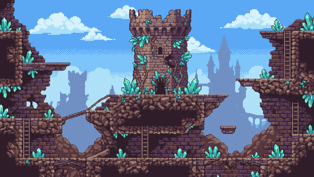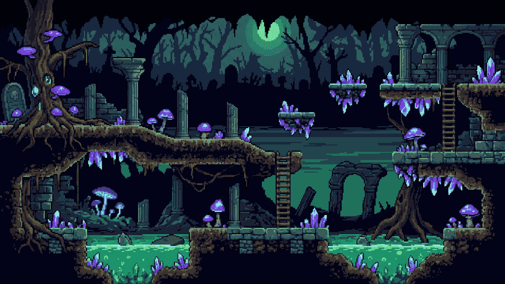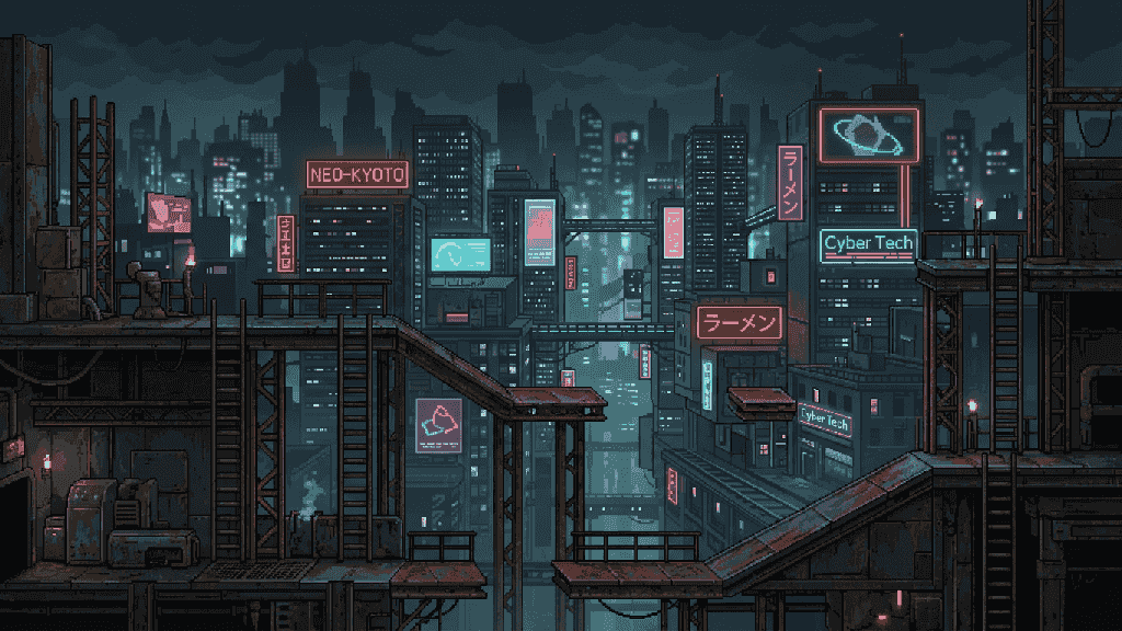 Explore AI-generated pixel art worlds on a retro handheld console. Click to play — move, jump, and discover procedural platformer maps.